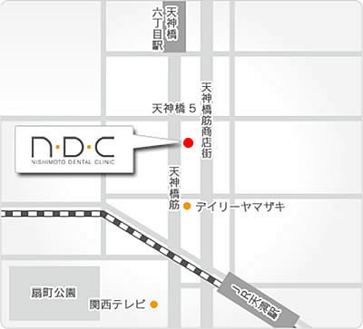 地下鉄「天神橋筋六丁目」・JR「天満駅」から徒歩5分圏内にある歯医者で通いやすい歯科医院です。